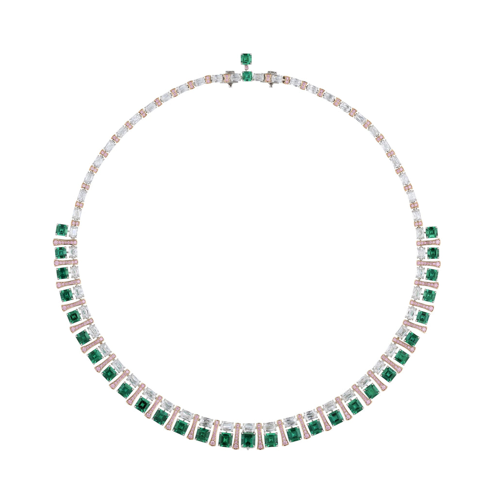 18K gold earrings with 1.89cts of baguette white diamonds and 1 .27cts of Argyle pink diamonds