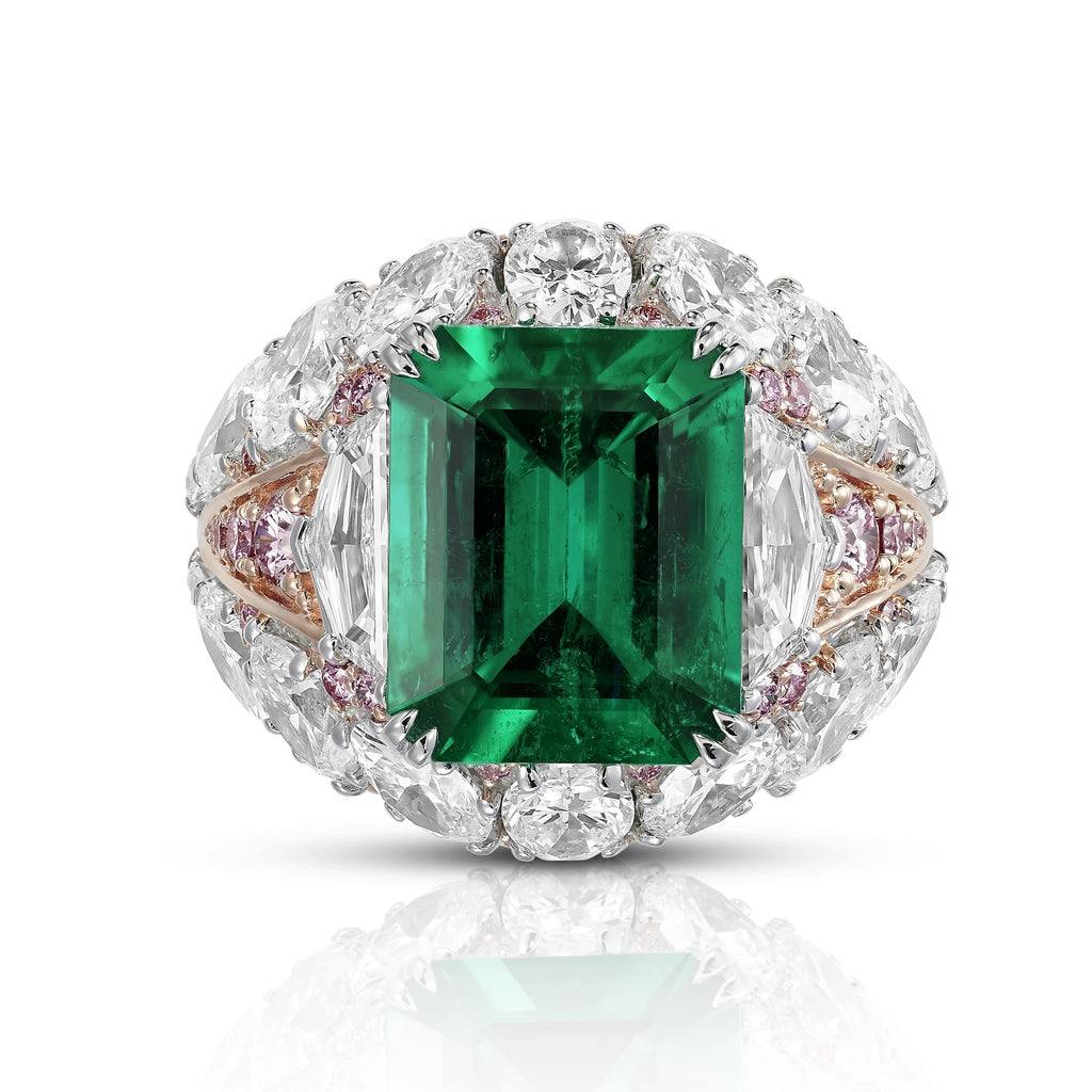 A 5.47ct no oil Muzo emerald set in a ring with 6.60cts white d iamonds and