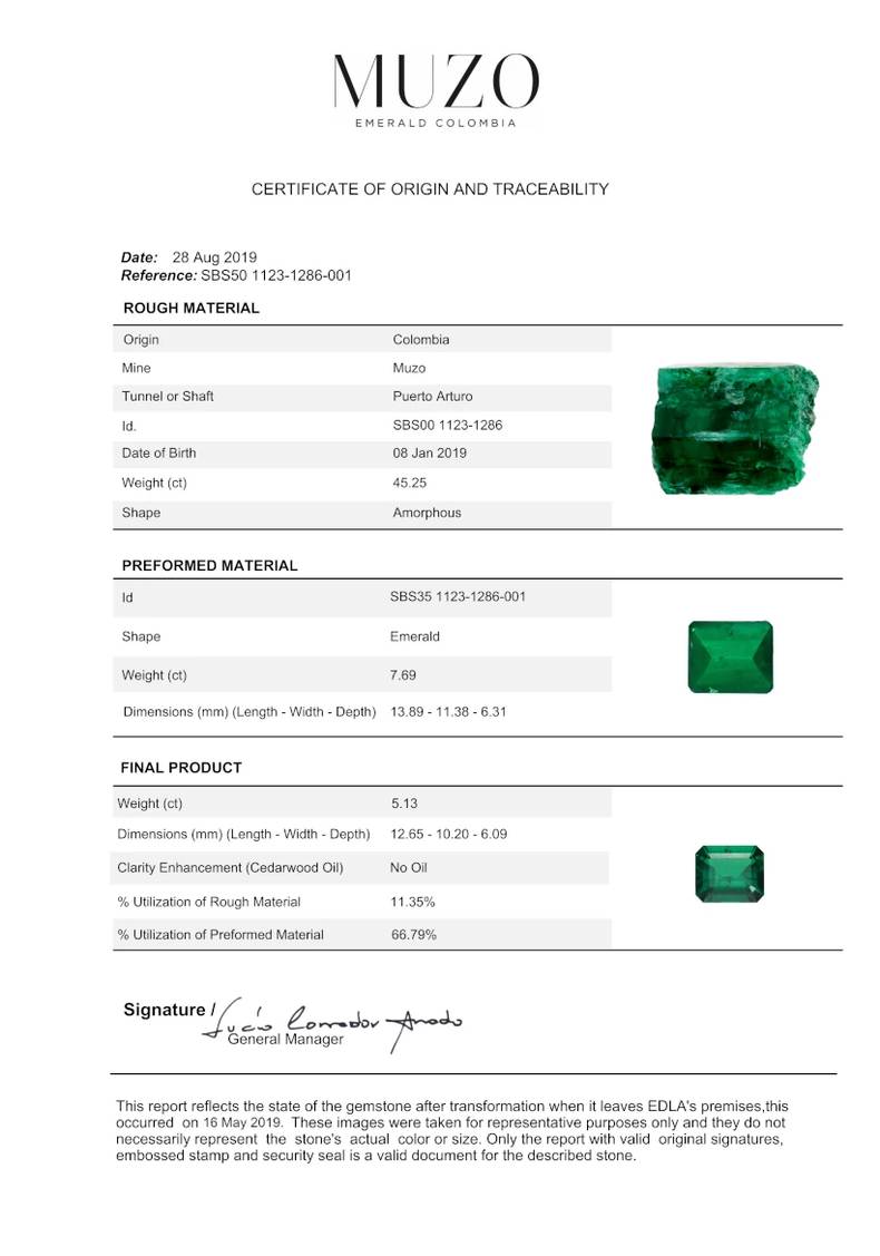 A feminine name invoking warmth, grace and serenity. Set in platinum and 18K gold, a no oil Muzo emerald 5.13ct currounded by 0.89cts Argyle pink diamonds and white diamonds
