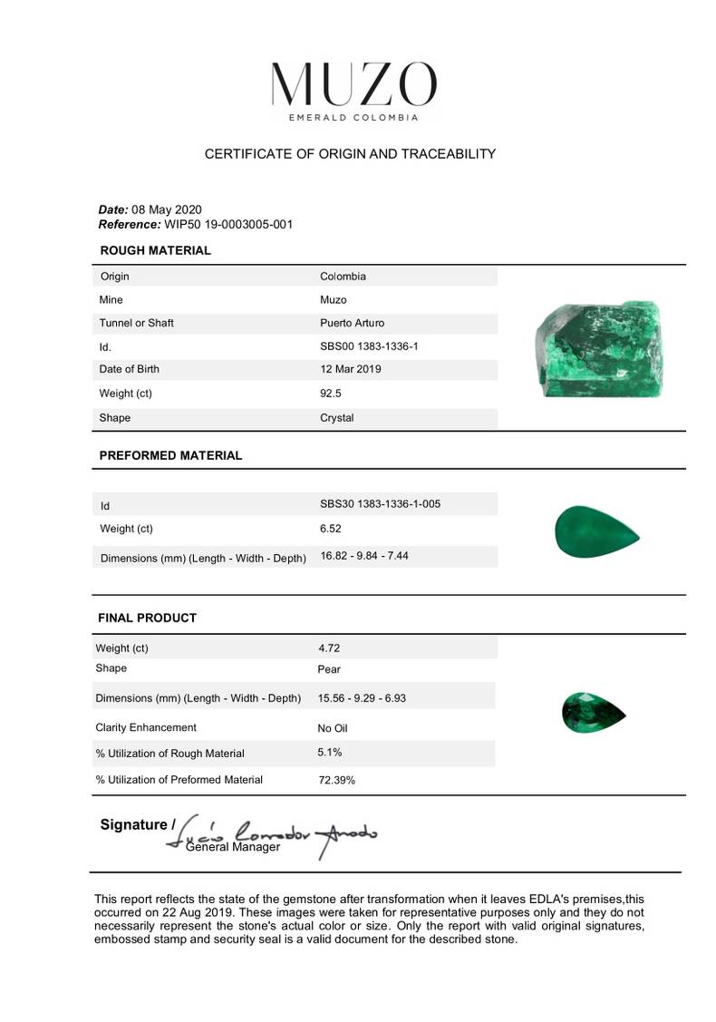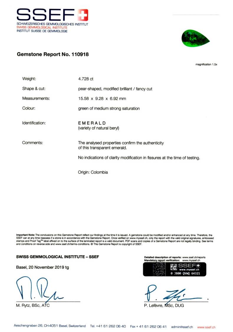- Certified: No clarity enhancement - SSEF (Swiss Gemmological Institute)