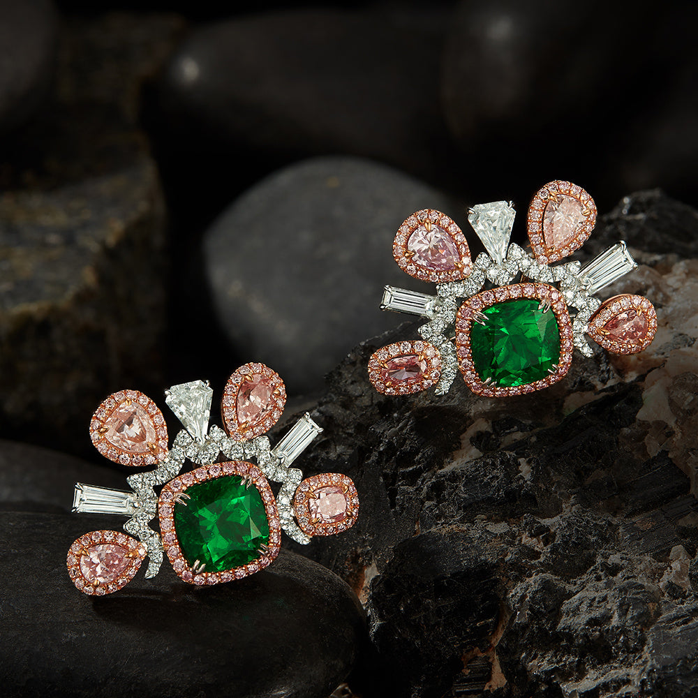 Majestique, the latest in the visionary Green Jewels collaboration, marks the third time two legendary mines have come together to create brilliant, responsibly-sourced earth magic. Mother nature has both inspired and created the enchanting gems that form deep within the earth’s surface: the emeralds, a gift from the ancient Los Andes mountains of Colombia, and the pink diamonds, sourced from the rugged, red wilderness of Australia’s remote East Kimberly region. The Argyle pink diamond mines ceased production late last year, rendering those in this collection rare and even more covetable. The rarity of the Argyle pink diamonds coupled with the brilliance of Muzo's magnificent emeralds provides an unprecedented investment opportunity; a unique occasion to own a masterpiece jewel of contemporary, wearable art.